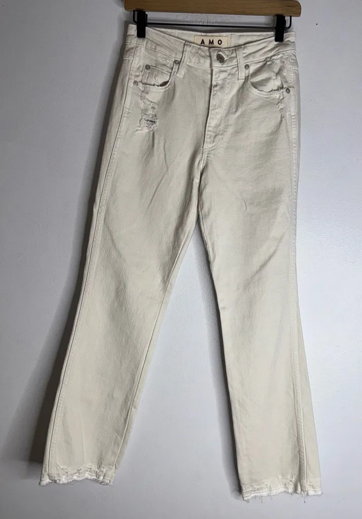 AMO Denim High‎ Rise Bella White Oak Jeans W/ Undone Hem Size 25 CP - $52 - From Crystal