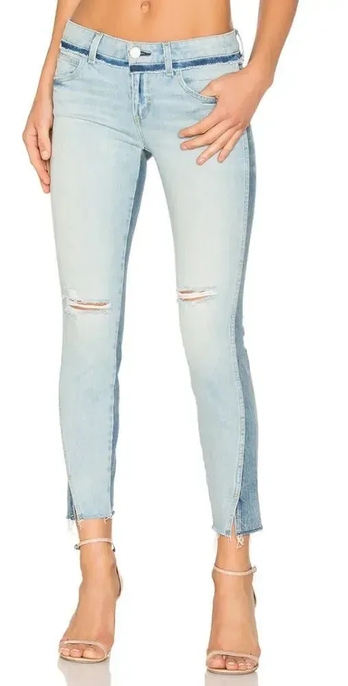 AMO Twist Two Tone Skinny Jeans in Rise & Shine Slight whiskering and fading along front. Distressed areas throughout. Raw cut hem. 98% cotton 2% elastane Size 25 Waist is approx 13.5" Front rise is approx 8" Inseam is approx 28" Ready for a new home ♻️ Feel free to ask any questions! _____________ About Spin + Thrift *Accepting all reasonable offers. *We ship same or next business day. *Smoke free home. *Shop with confidence over 5500+ 5 star ratings, *New items added daily!