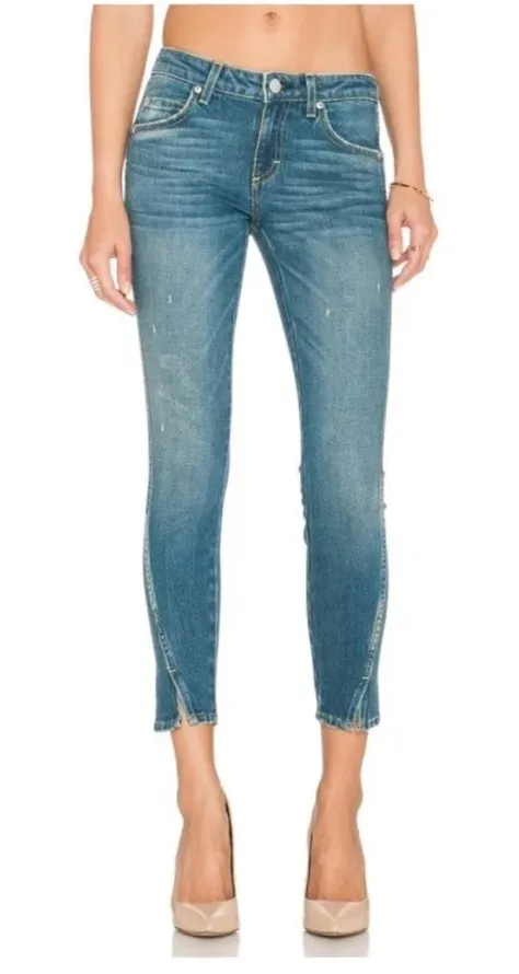 - AMO Twist Dive Bar Skinny Leg Jeans - Crop Style - Blue Wash SIZE 24 - Mid Rise - 5 Pockets - Zipper & Button Closure Rise: 8" Inseam: 25.25 Fabric: 100% Cotton Excellent used condition, no visible signs of excessive wear. Please note, the first photo is a stock photo and the remaining photos are of the exact pair of jeans you will receive. Please reach out with any questions!