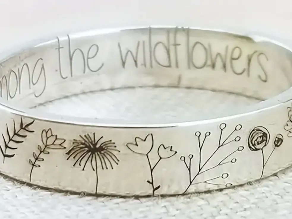 Among the Wildflowers Engraved 6mm Stainless Steel Band Size 7 NWT Silver - $15 New With Tags - From Cari