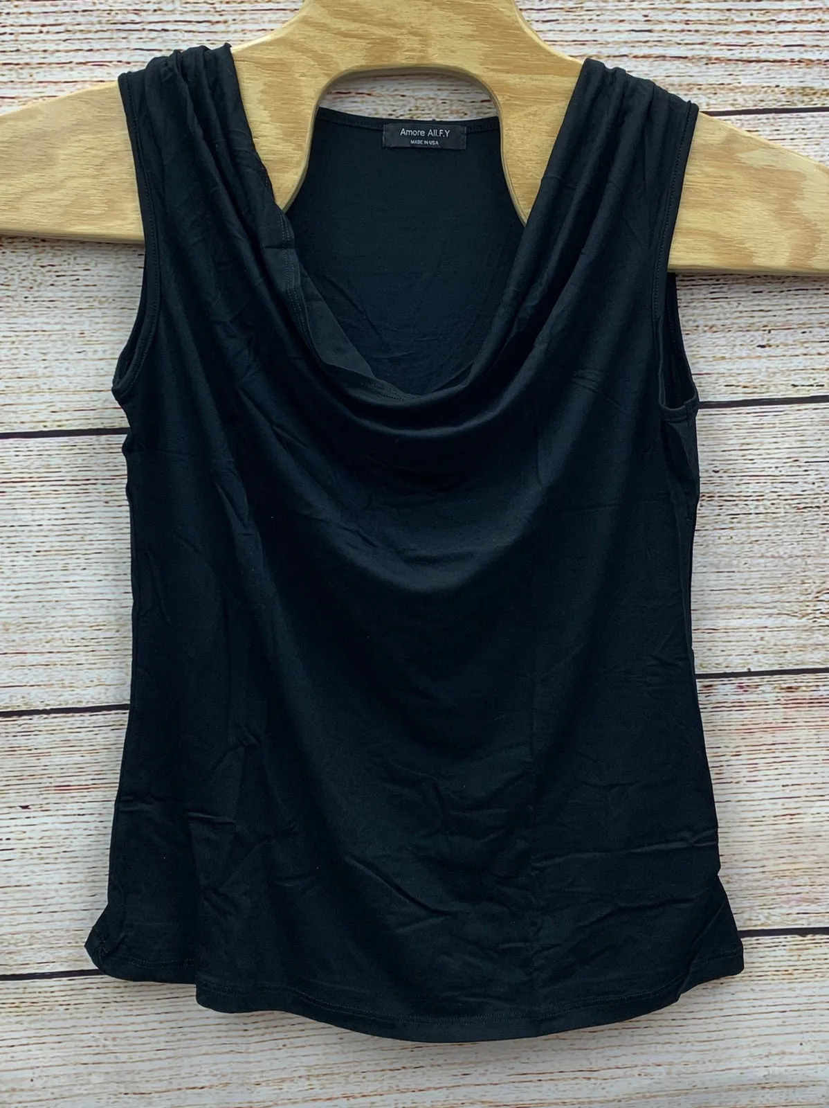 Amore All F Y ruched sleeveless blouse. This versatile black tank top features a flattering cowl neckline and a comfortable stretch fabric for an easy fit. Its sleeveless design makes it perfect for layering or wearing on its own. The ruched detailing adds a touch of subtle elegance, making it a sophisticated choice for any wardrobe. Type: Tank Department: Women Style: Basic Material: Rayon, Spandex, Rayon Blend, Spandex Blend Neckline: Cowl Neck Sleeve Length: Sleeveless Sleeve Type: Classic/Fitted Sleeve Pattern: Solid Accents: Pleated Features: All Seasons Fit: Classic Keywords: Amore All FY, Black Tank Top, Ruched Blouse, Cowl Neck Tank, Sleeveless Top, Stretch Tank, Womens Blouse, Layering Top, Basic Top, Casual Top, Work Top, Versatile Top, Comfortable Top, Fashion Top, Tunic Top Please look at pictures closely for condition.