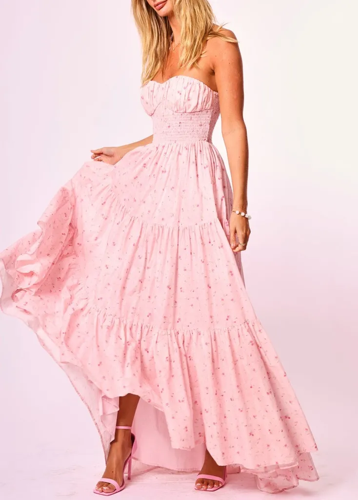 Amy Jane London Posey Maxi Dress Strapless Tiered Cotton Ditsy Floral Size S Pink - $125 - From Sarah