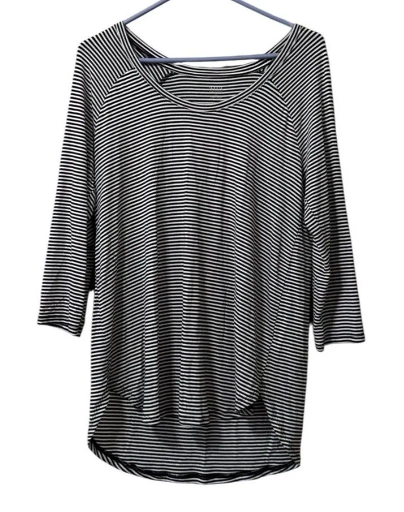 This top is preowned and in great used condition! a.n.a A New Approach Black & White Striped Lon... Show more