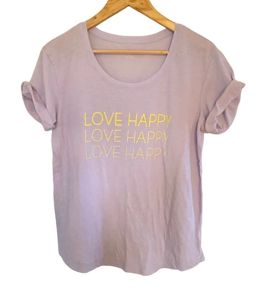 A.n.a. A new approach short sleeve cuffed crew neck love happy medium purple Purple - $13 - From BrightlySheSparkles
