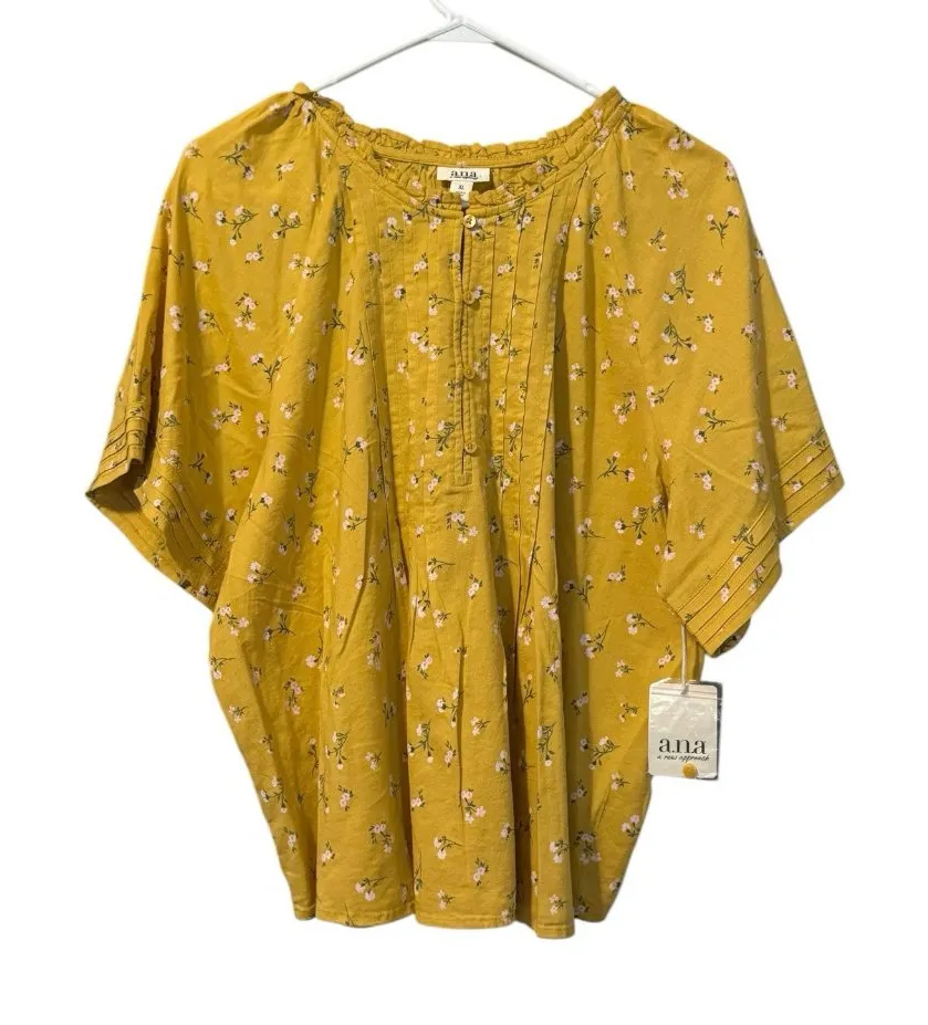 This shirt is new with tags and in excellent condition! Ana A New Approach Women Blouse Long Sleeve Sz XL Gold Floral Kimono Sleeve NWT ***Please be advised, color may appear more vibrant, lighter/darker in pictures due to flash, contrast, lighting or your phone/computer screen set up, etc. I try to described color as best as possible. I do check every item very closely while taking pictures and while packing it for shipping but it is very easy to still miss a stain or small damage. So please, if you receive an item with a defect not mentioned on the description, message me and I will do my best to fix the problem. Thank you! Any questions please dont hesitate to ask.