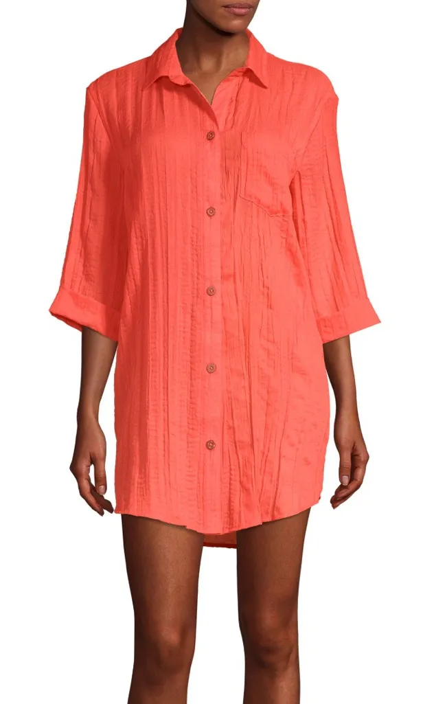 Coral Sheer Button Down Swim CoverUp Shirt Dress Red Size M - $15 New With Tags - From Diva