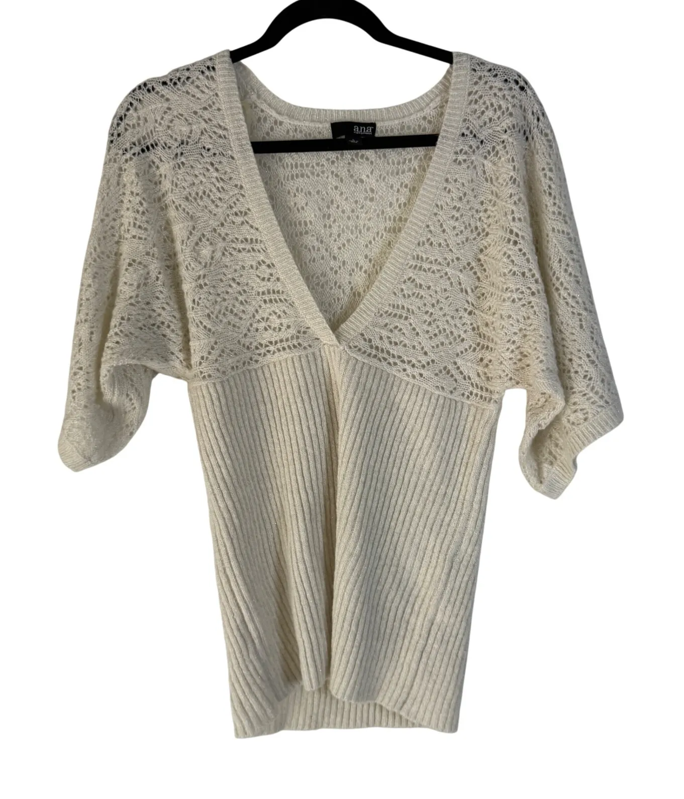 ANA Cream Lace Knit Dolman Sleeve V-Neck Sweater L Coquette Cottage Fairy Style: Pullover Departmen... Show more