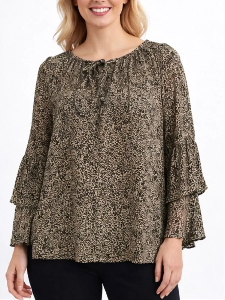 Brand: Anama Description: vine floral print tie neck bell sleeve top Size: m Color: black and white Condition: Gently Worn Very Good 👍🏻 Measurements: Pit to pit: 21” Length: 22” **Bundle and Save!!** all measurements are approximate and taken laying down 10/20 A32