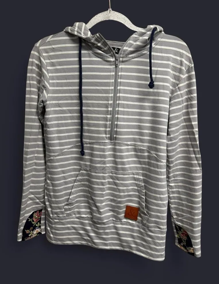 & (ampersand) Gray Striped Hoodie with Floral Accents - $16 - From Mary