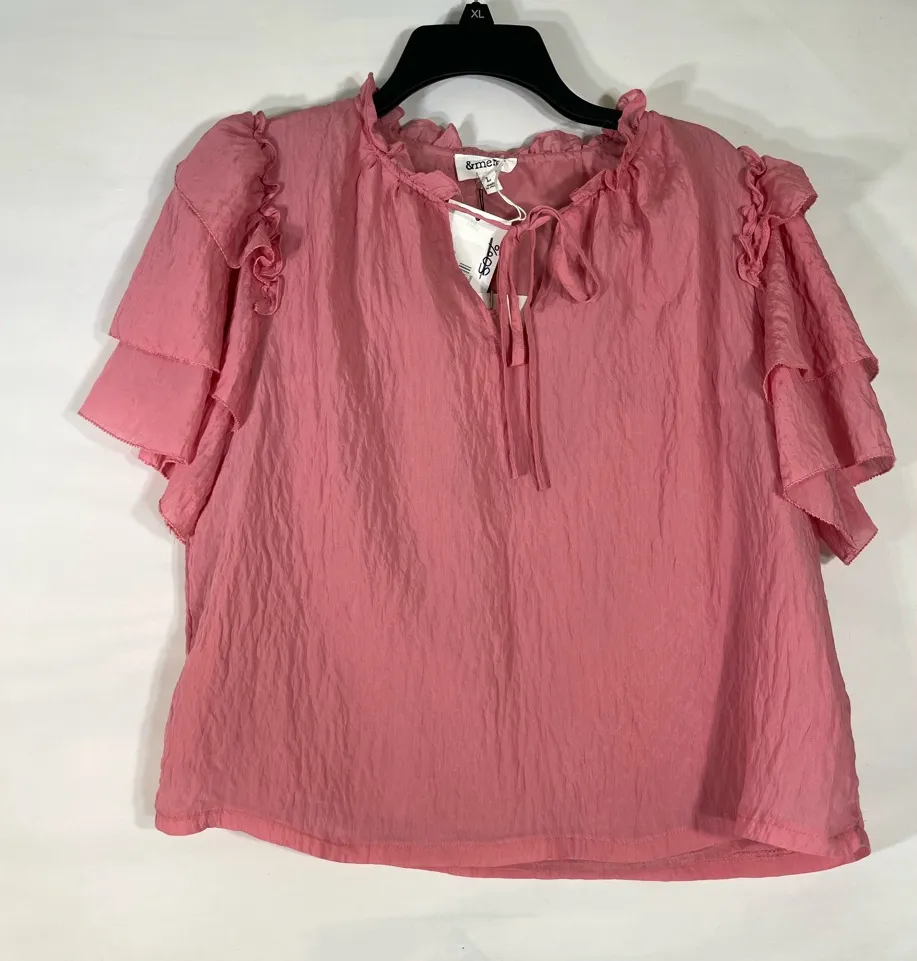 &Merci Crop Tie Front Blouse W/Ruffled Sleeves Women’s L Dusty Rose Color NEW‎ Size L - $32 New With Tags - From DeDe