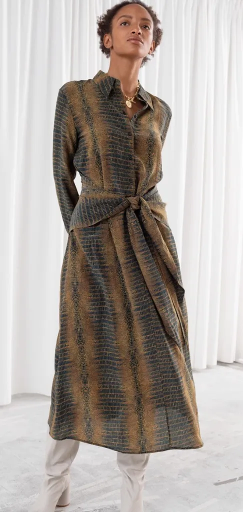 Chic long sleeve dress with a button-up front. Features a stylish tie waist. Perfect for versatile w... Show more