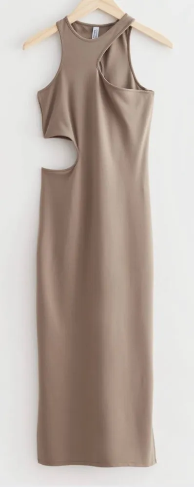 size S. Sleeveless, racer back, pull on style, cut out, bodycon fit. No sign of flaws noted. Comes f... Show more