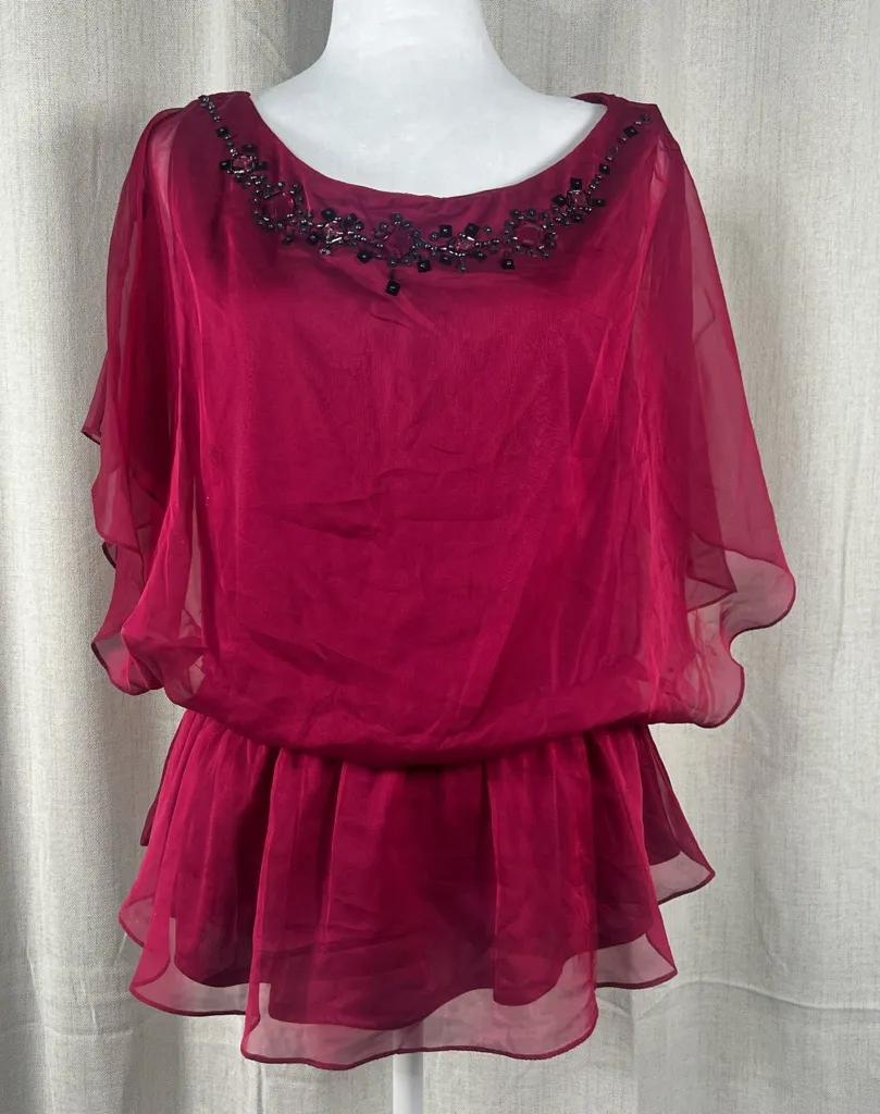 Chiffon blouse with beaded neckline. Flowy and elegant design. Perfect for versatile styling. Woman’... Show more