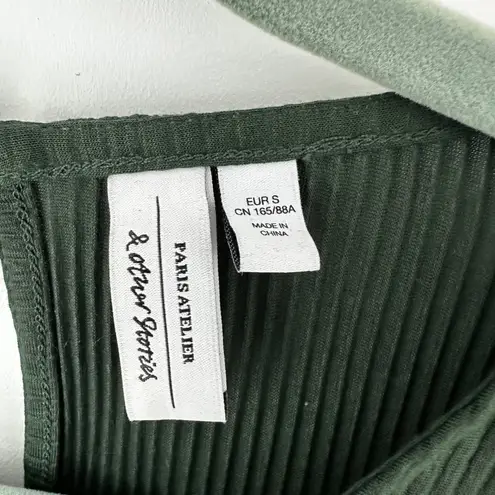 Keywords: & Other Stories, peplum top, blouse, pleated, balloon sleeve, long sleeve, green top, size small, womens top, dressy blouse, party top, casual blouse, stylish top