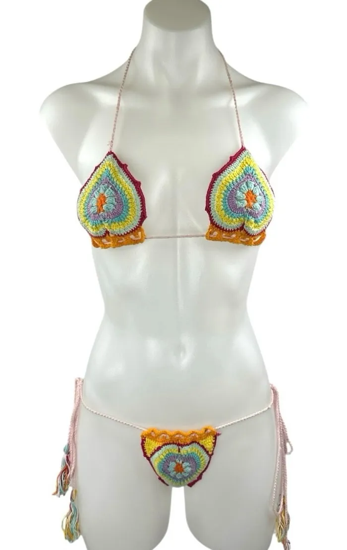 Andi Baqus Women's Multicolor Crochet Tassel Two-Piece Swimsuit Swimwear Sz S/M - $56 - From Brie