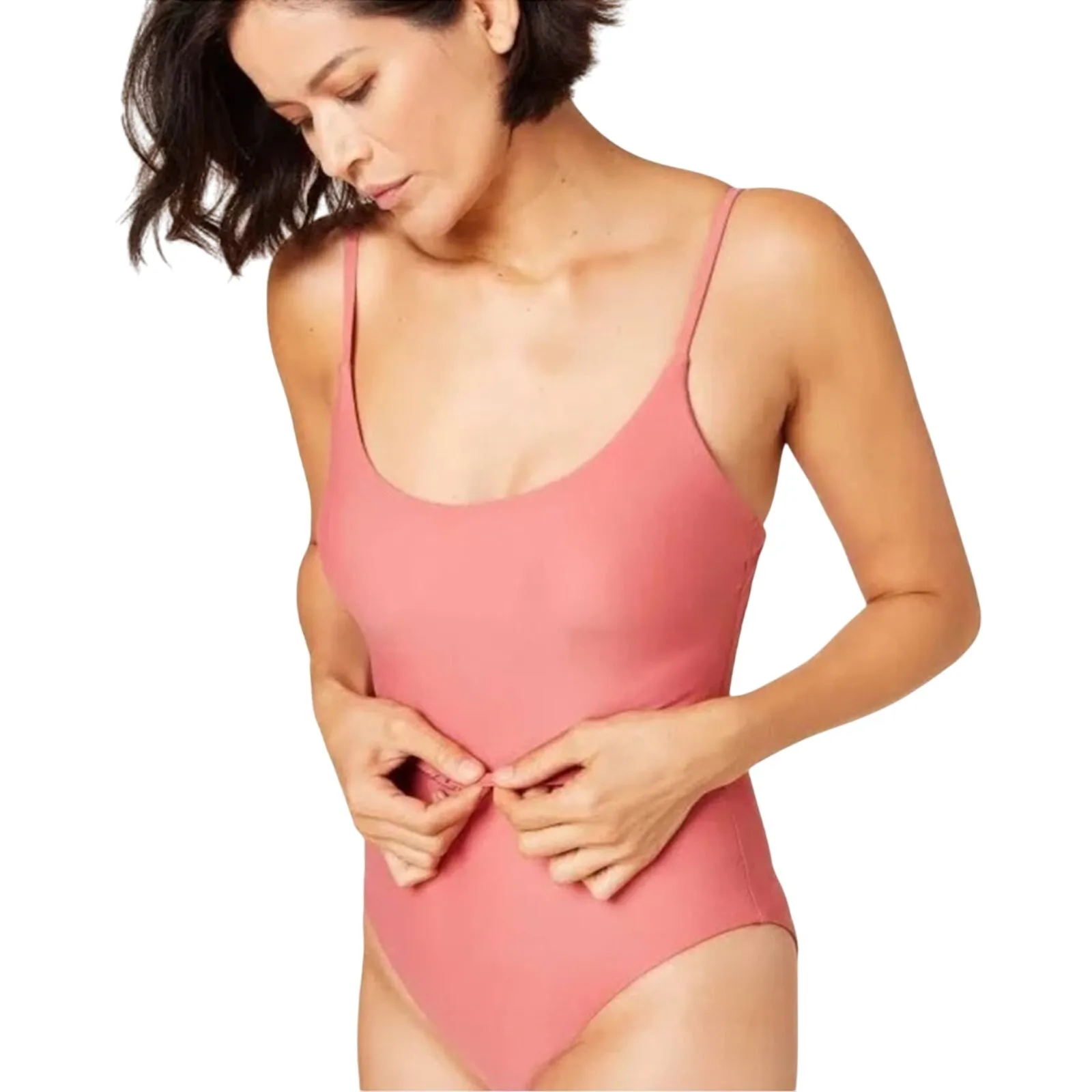 Turn heads in this Andie Swim The Riviera One Piece in Punch, size Medium, new with tags. This pale peachy-pink swimsuit blends classic elegance with modern details, featuring a stylish attached belt with buckle closure and removable padded cups for customizable support. Adjustable straps ensure a secure, flattering fit, while the recycled nylon-spandex blend offers a smooth, premium feel. Perfect for beach days, pool lounging, vacations, and minimalist summer styling. Model images are for fit reference; consult size chart in photos for accurate sizing. Shell: 74 percent recycled nylon, 26 percent spandex Lining: 87 percent recycled nylon, 13 percent spandex Chic, contemporary, and confidence-boosting—an elevated staple for your swim wardrobe. #AndieSwim #TheRiviera #BeltedSwimsuit #PunchColor #OnePieceSwim #NWT #MinimalistSwim #VacationStyle #PoolReady
