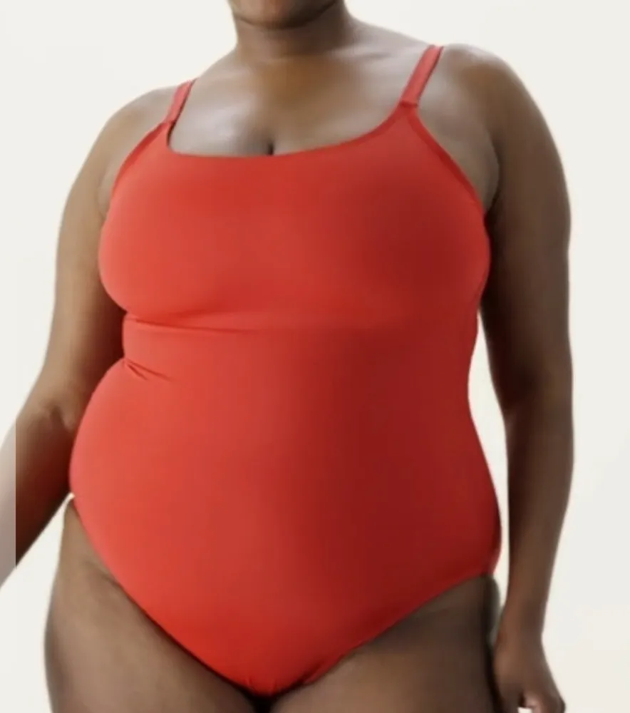 Adjustable straps Moderate back coverage 80% recycled nylon, 20% spandex Hand wash, dry flat Medium bust Medium leg XXL XXXL have thicker more supportive straps than shown in the cover photo.