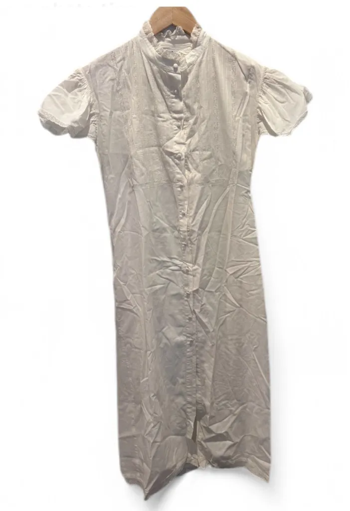 Andion Short Sleeve Button Down White Cotton Peasant Dress Size Small Great pre owned condition. 1... Show more