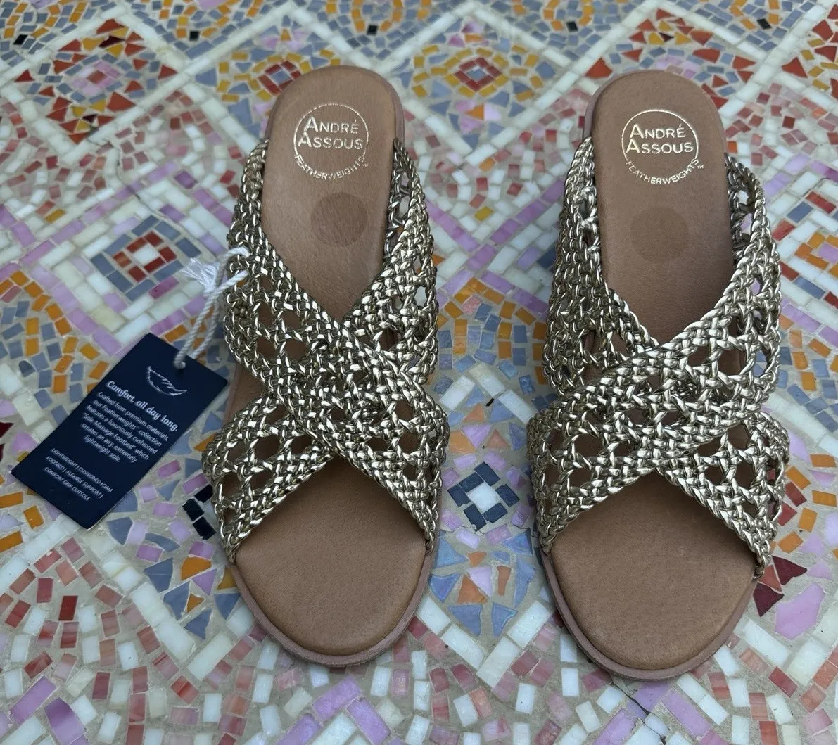 André Assous Bryana Woven Wedge Sandals Metallic Gold Size 9.5 Women Featherweights Brand new no bo... Show more