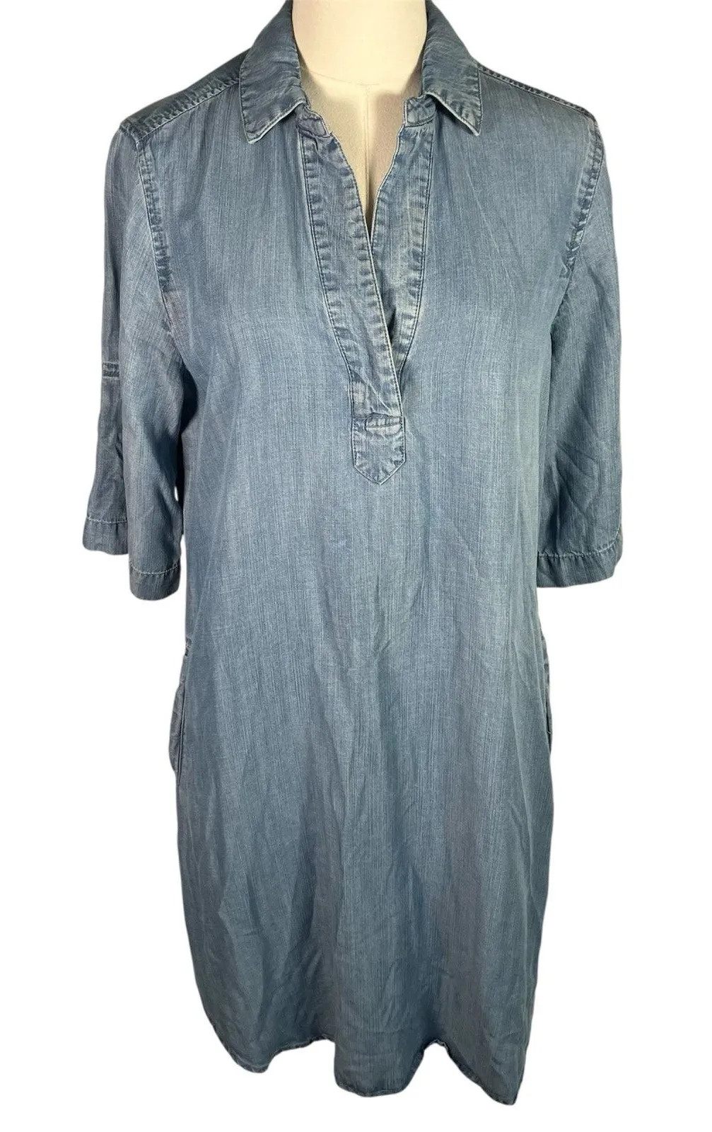 Andrea Jovine‎ Chambray Tencel Shirt Dress Blue Small Lightweight V-Neck Pockets - $28 - From Tracie