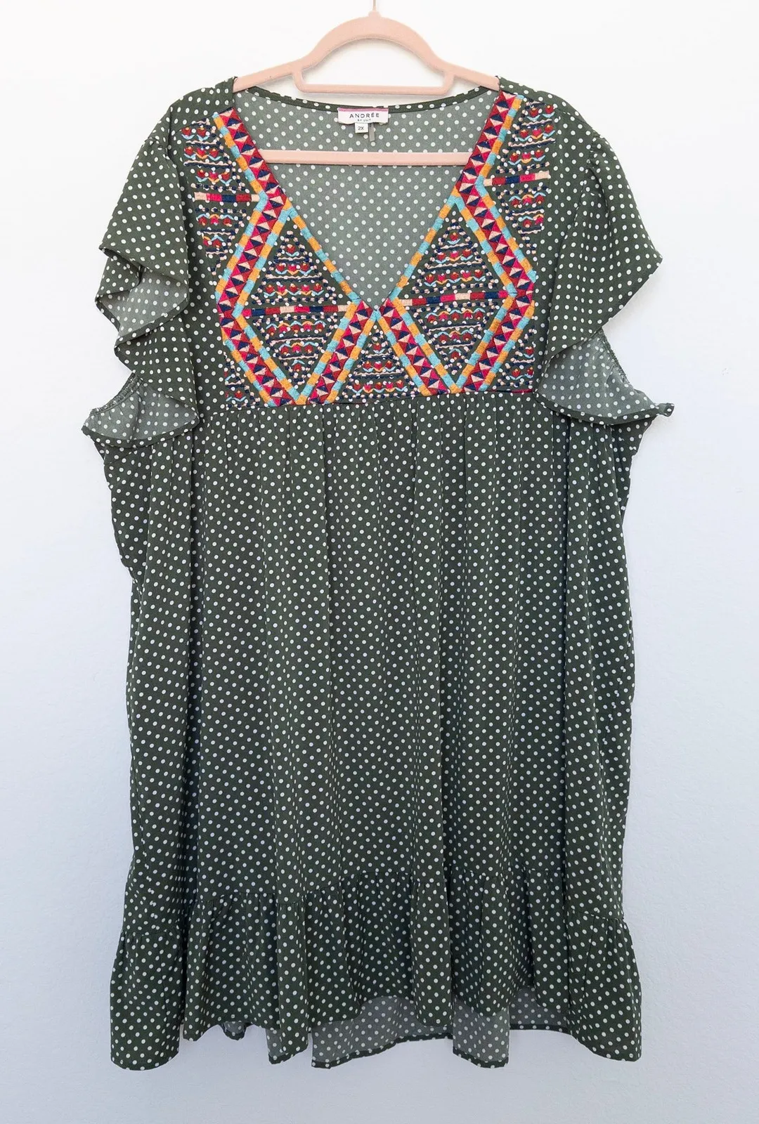 Style with ankle boots or sandals for an easy festival, brunch, or casual day out look. boho style, embroidered detail, soft ruffle hem, festival fashion, southwestern touch, flowy fit, cottagecore inspired, lightweight dress, polka dot print, colorful yoke Condition: Excellent condition. No visible flaws. See all photos for details. Approximate Measurements (taken flat lay): Length: 40" Pit to Pit: 27" Ships next day Bundle deals available – just ask! Only 1 in stock – don't sleep!