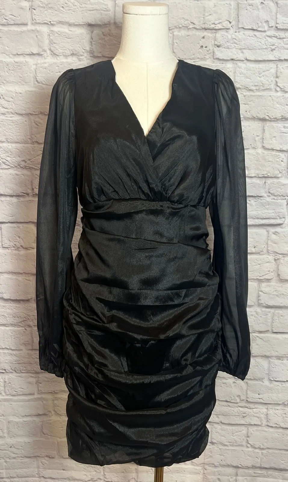 Andrée by Unit Women's Large Black Ruched Mini Dress Black ruched mini dress with V-neckline and lon... Show more