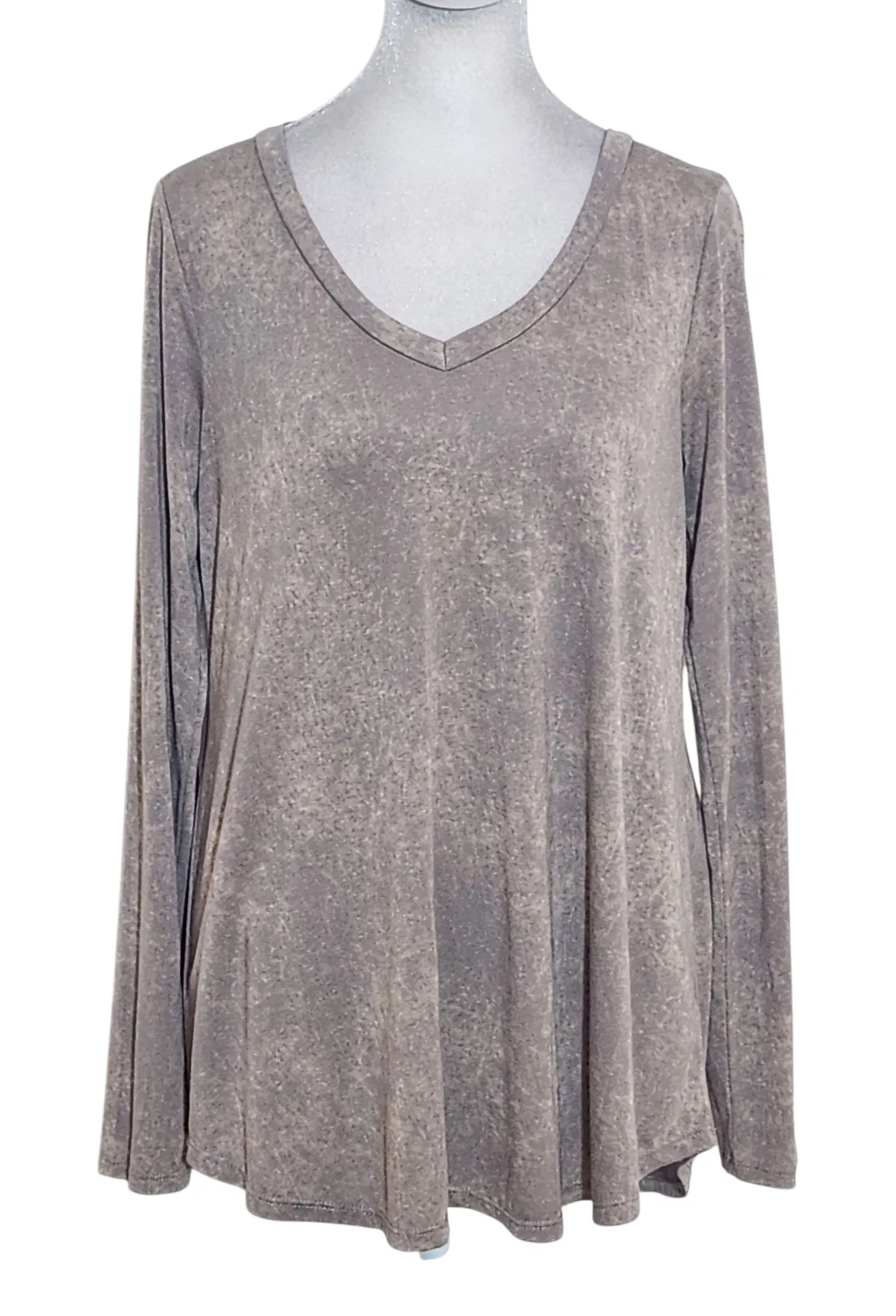 Andree by Unit long sleeve v-neck tee in a taupe shade with a speckled look. The fabric is very soft... Show more