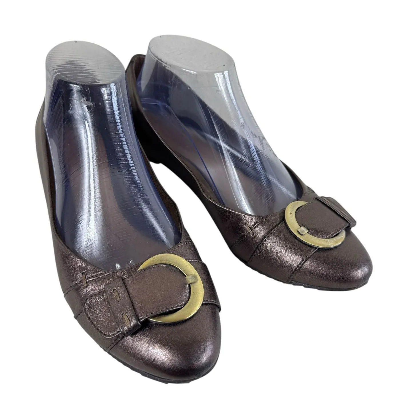 Andrew Geller Brown Metallic Buckle Low Heeled Ballet Slip On Shoes. They do have a flaw on back of... Show more