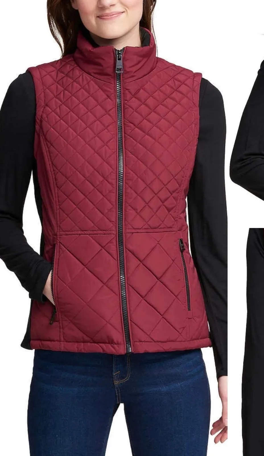 Andrew Marc Women's Quilted Insulated Full Zip Vest Burgundy & Black Size Medium - front zip pock... Show more
