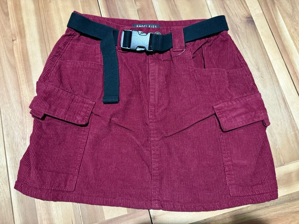 Angel kiss corduroy burgundy skirt w/ belt small - $20 - From karlee