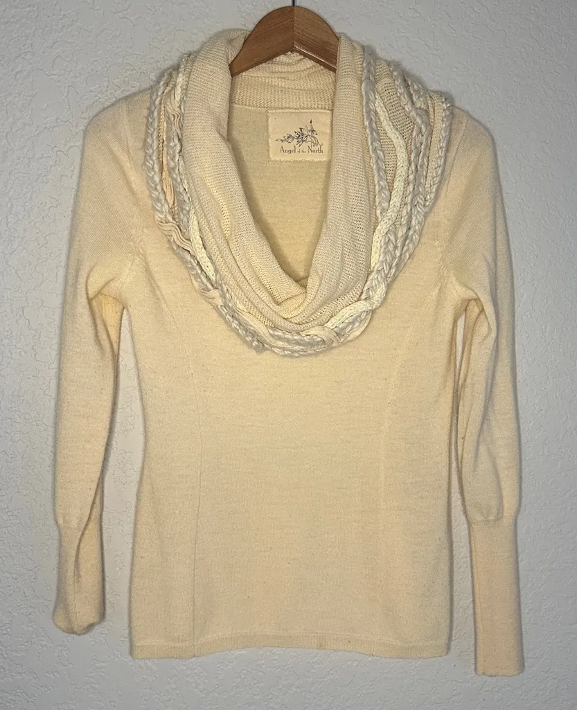 Angel of The North Anthropologie Sweater Size medium Braided Cowl Neck 100% Merino Wool Soft Girl... Show more