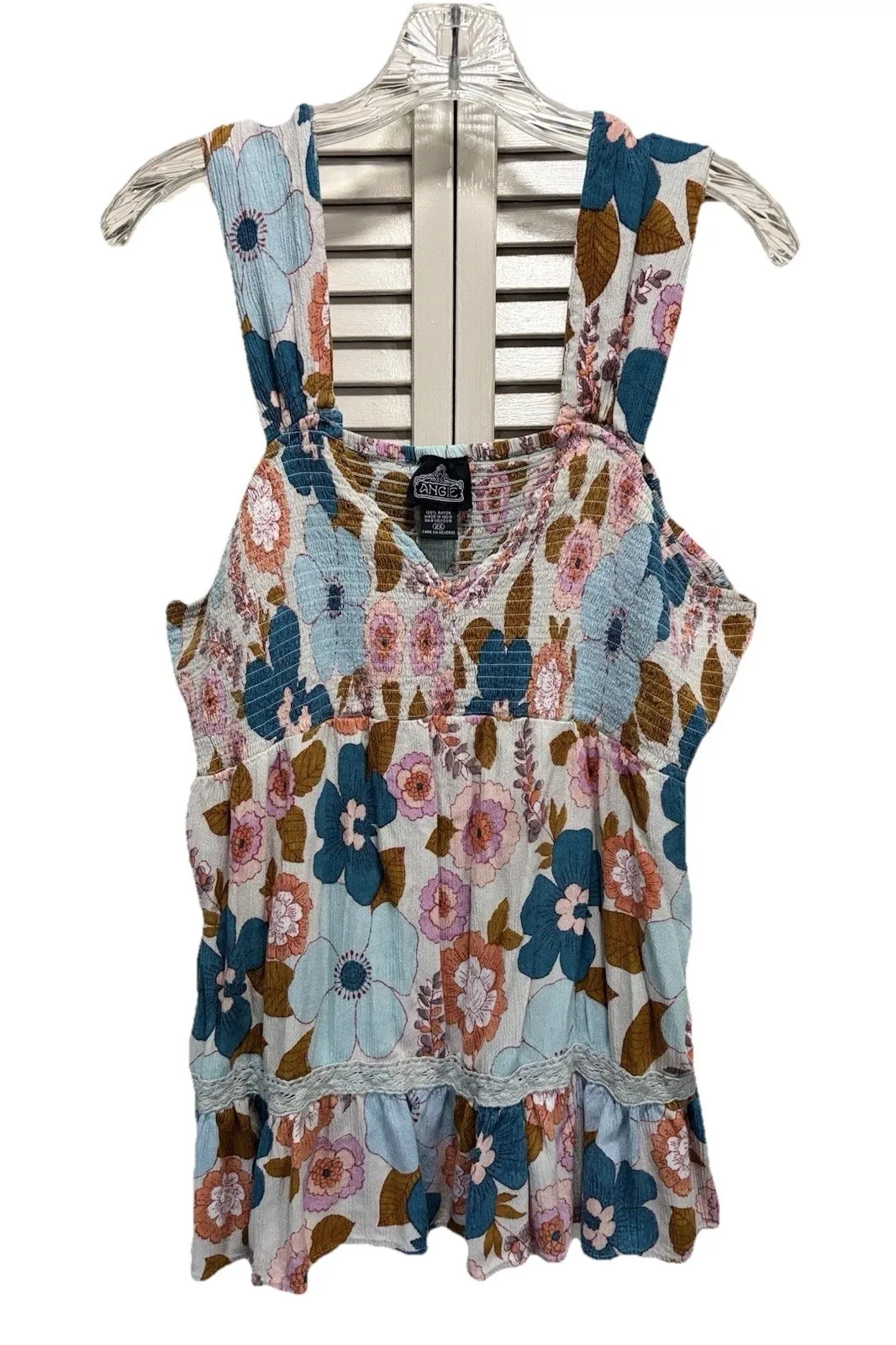 The Angie Floral Smocked Babydoll Sleeveless Top in size 2XL is a stylish and comfortable blouse per... Show more
