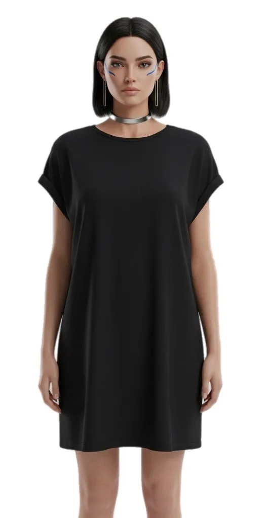 Anine Bing Tanner Sleeveless Shoulder Pad Organic Cotton Dress in Black. Excellent used condition with no flaws. Size XS. Chest - 20" Length - 34.5" This comfortable and stylish dress features a classic crew neckline and short, cuffed sleeves for a relaxed yet put-together look. The oversized silhouette offers a modern and effortless vibe, perfect for casual outings or a chic layered look. Ideal for everyday wear, brunch with friends, or a comfortable travel outfit. Material: 100% Organic Cotton Black t-shirt dress, organic cotton, oversized, mini dress, casual dress, crew neck, short sleeve, effortless style, modern, everyday wear, travel, brunch outfit, normcore SKU 122925