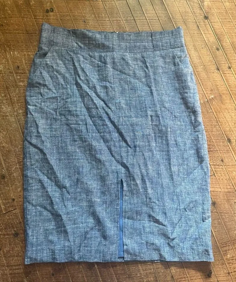 Ann Taylor linen blend, blue, tweed look, business casual, longer pencil skirt. Pairs well with a bl... Show more