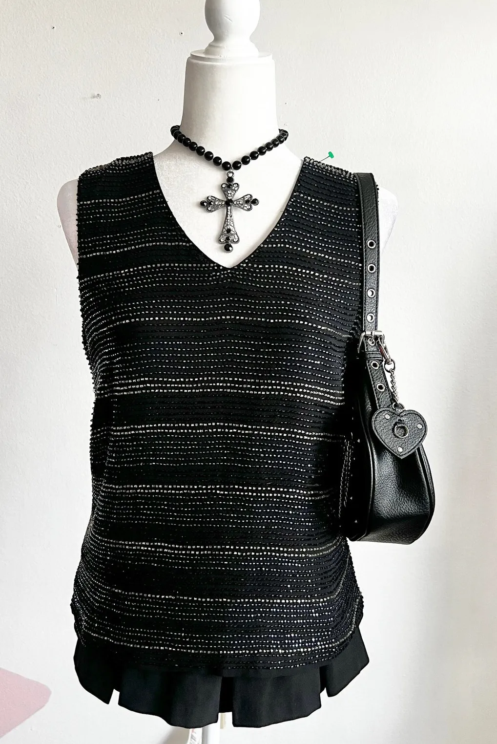 Black Beaded Tank Top, 90s, Y2K, Quiet Luxury, Minimalist,‎ Office Siren, Small - $11 - From Kenia