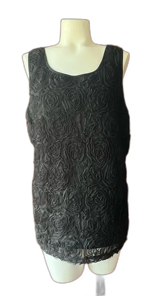 Cute Ann Taylor black blouse. Mesh flower-like design over a soft black lining. Approximate measure... Show more