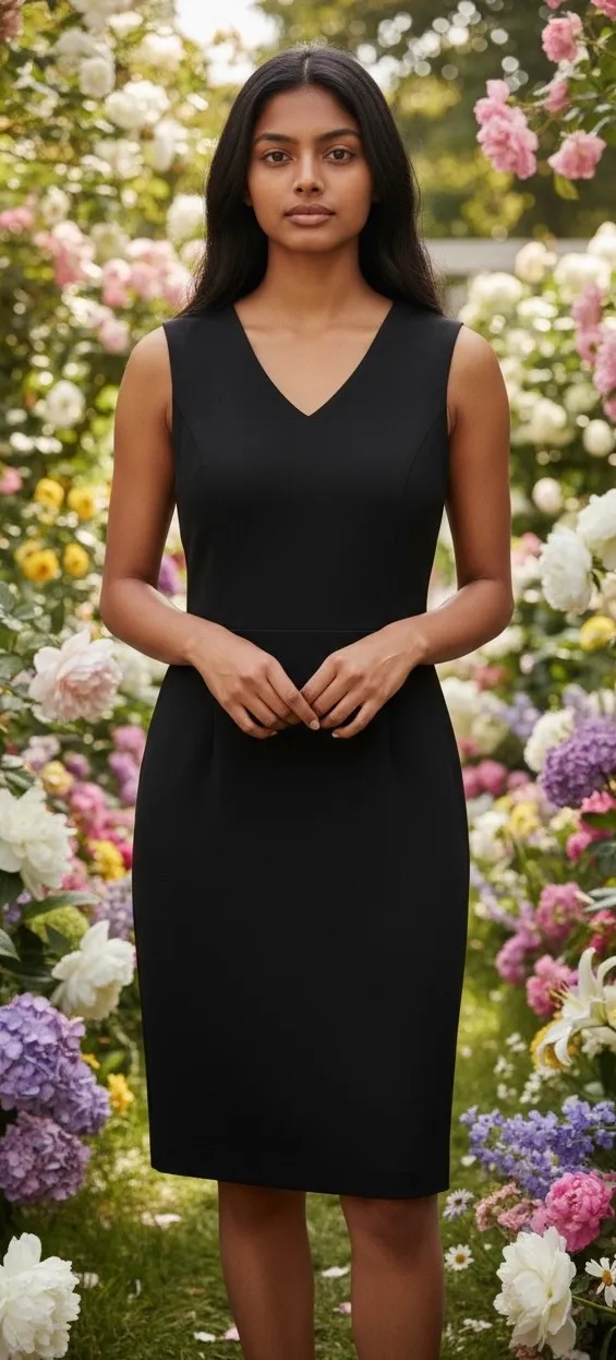 Exudes timeless elegance with this chic black dress. A sleek, modern silhouette hugs your curves in all the right places, promising an instant confidence boost. The flattering V-neckline elongates the neck, while the classic knee-length cut makes it versatile for day or night. Perfect for making a statement at your next business meeting, cocktail party, or date night.