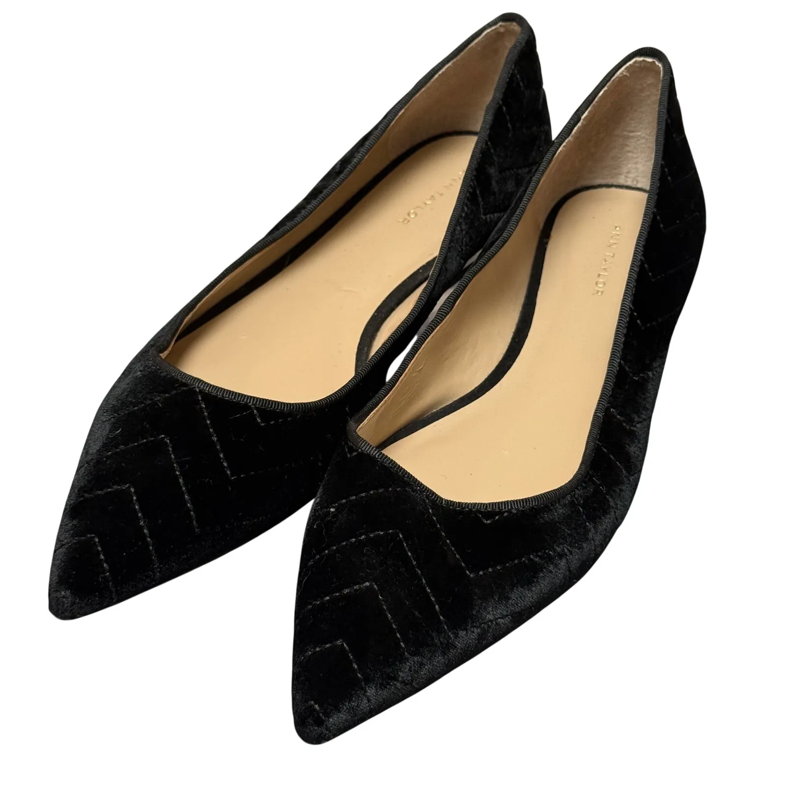 Ann Taylor Black Velvet Chevron Pointed Toe Flats Work Formal Business - 7.5 - $25 - From patty