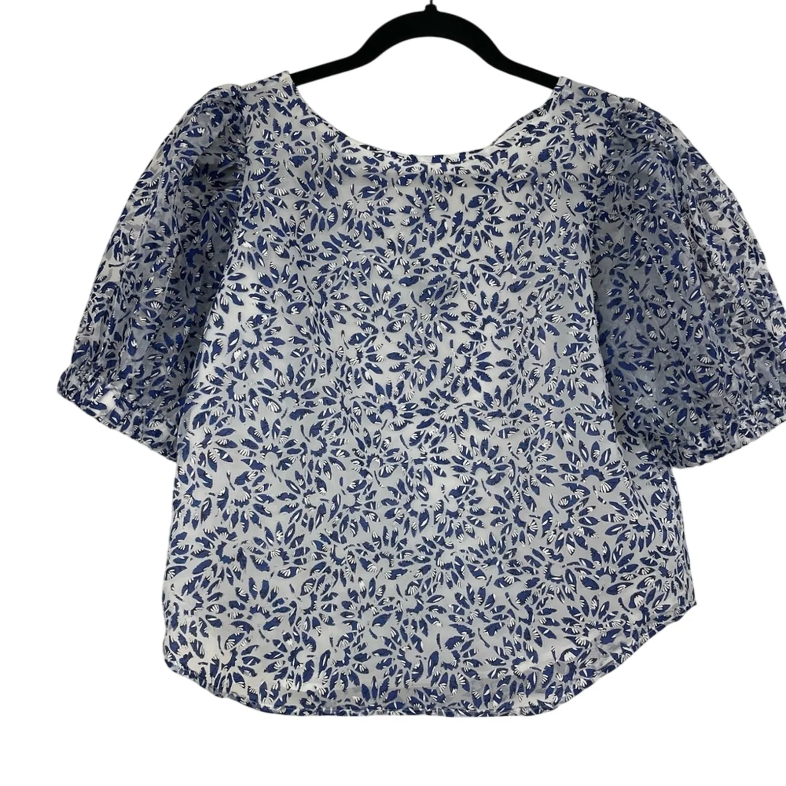 Ann Taylor Blue Floral Puff Sleeve Cropped Blouse XSP Preowned in excellent condition Quick Shippin... Show more