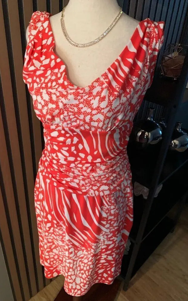 Ann Taylor body con summer/work dress size 2 orange and white short Measurements pit to pit is 18... Show more