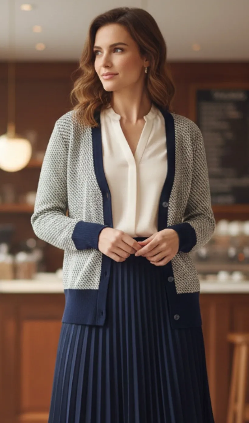 Elevate your everyday style with this Ann Taylor Factory cardigan. Its intricate geometric knit in... Show more