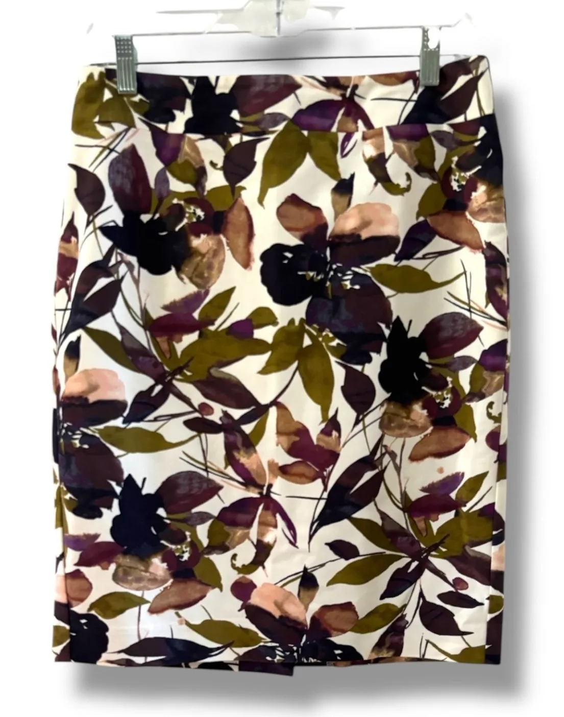 Ann Taylor Factory Pencil Skirt Floral Print Multi Color 6 Women's Plum Green GENERALLY SHIP SAME O... Show more