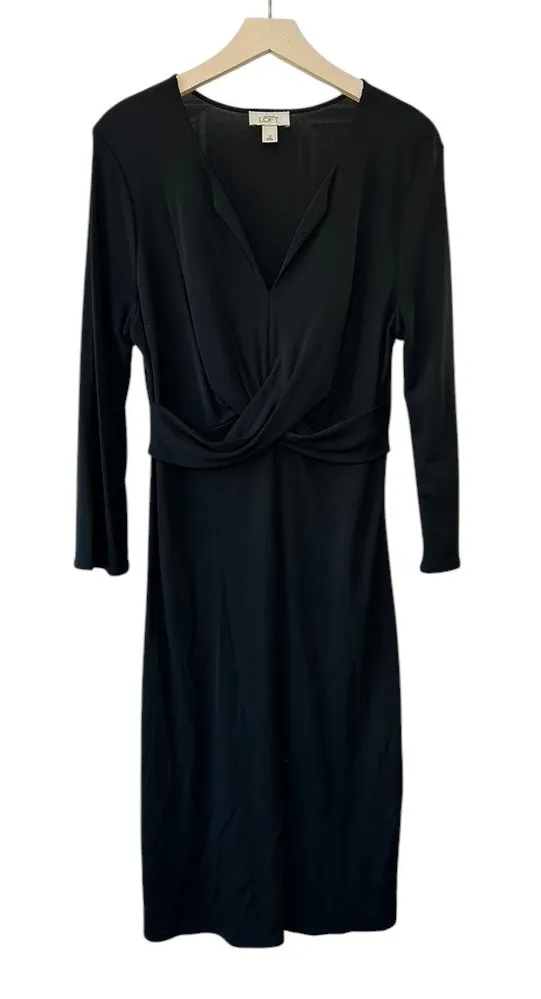 Ann Taylor LOFT Black Long Sleeve V-Neck Criss Cross Waist Midi Dress Side Zip Closure Women's 12 C... Show more