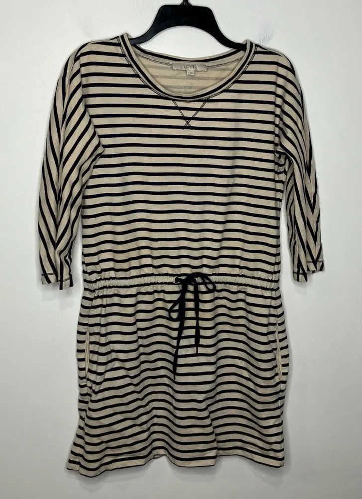 Ann Taylor Loft cream & blue striped dress long sleeves, pockets women’s size small Very good pr... Show more