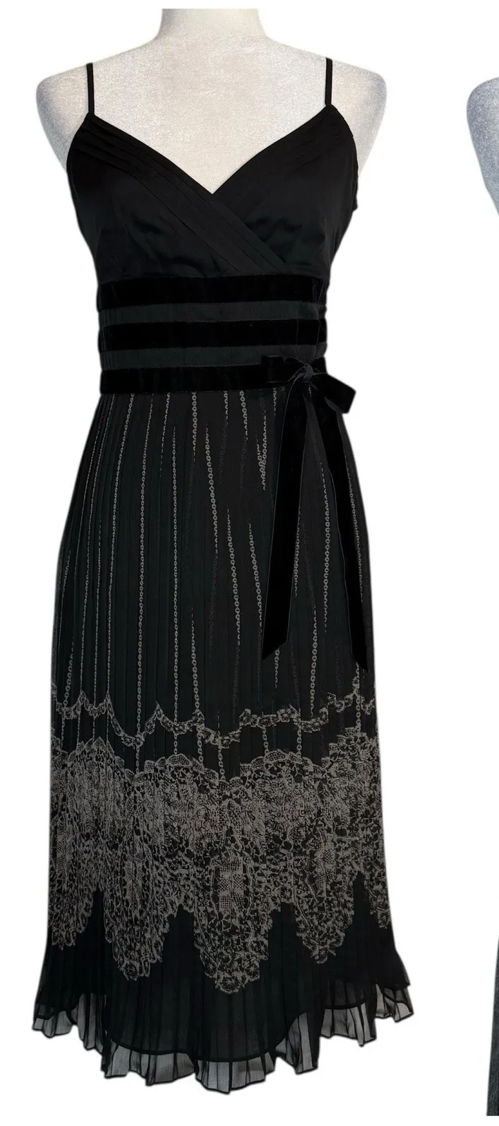 Ann Taylor Loft dress, Loft black dress, Y2K midi dress, Whimsigoth, gothic romance, lace hem dress, velvet ribbon waist, pleated chiffon dress, babydoll evening dress, vintage inspired, semi sheer dress, romantic goth, witchy, dark fairy, holiday party dress, cocktail dress, 2000s style, dark feminine, gothic aesthetic, evening formal, bridesmaid guest dress.