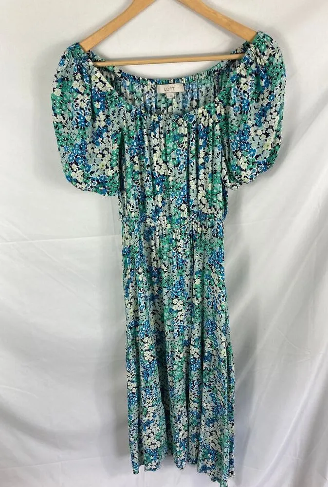 Ann Taylor LOFT Floral Print Off Shoulder Maxi Dress flowy spring summer dress cottagecore / romanti... Show more