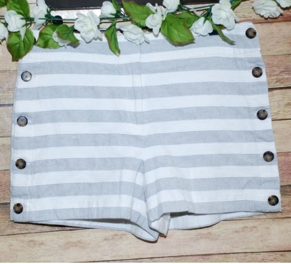 Cute Ann Taylor Loft Ladies White & Gray Striped Short Shorts Size 10 Buttons Cotton Location: Sec... Show more