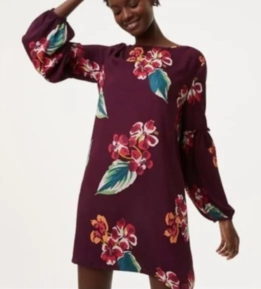 Ann Taylor LOFT Petite Women's Balloon Sleeve Floral Shift dress in plum size XSP Beautiful vibrant... Show more