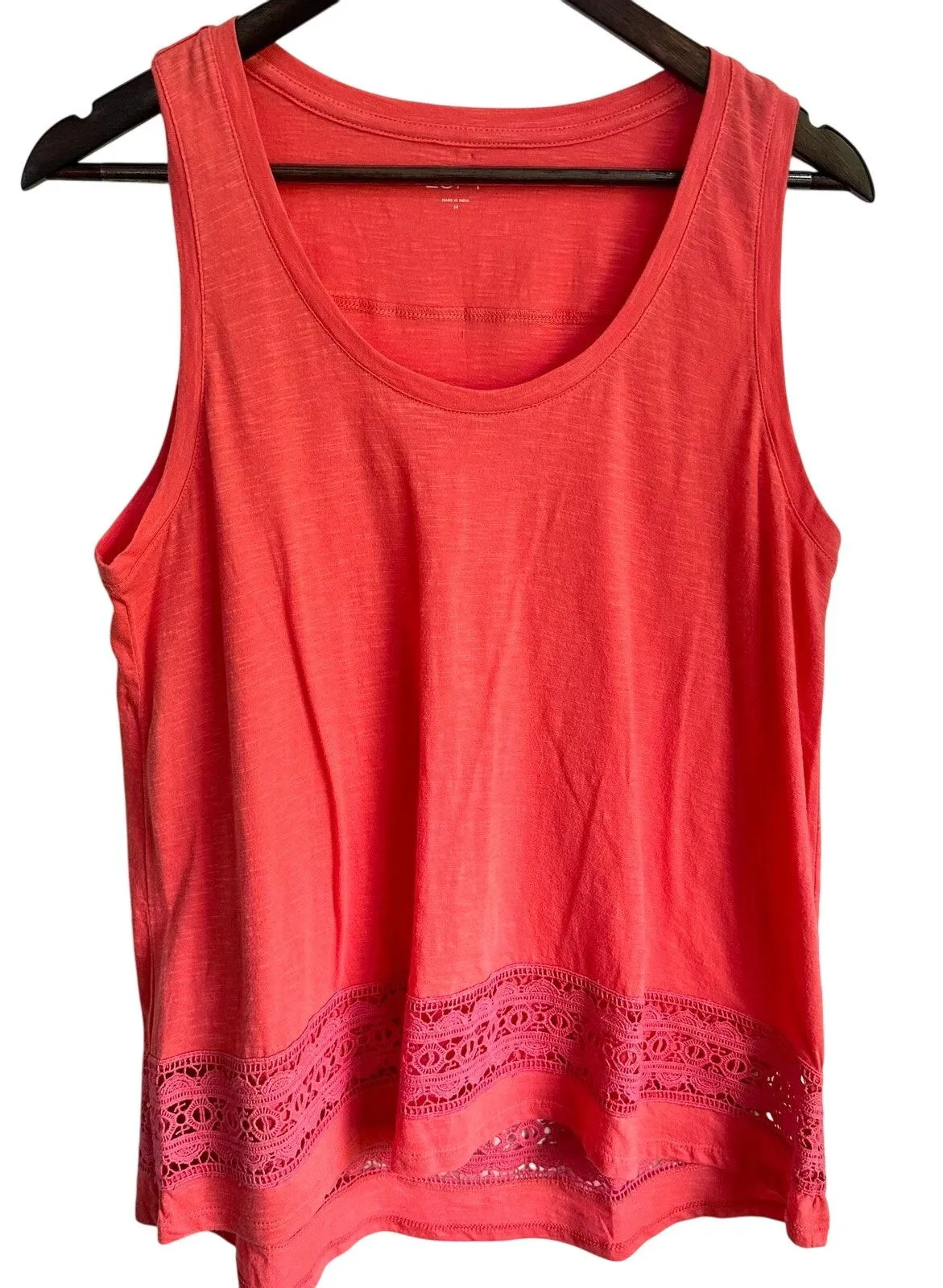 Ann Taylor LOFT Pink Coral Cotton Flowy Lace Trim Summer Tank Top Women's Size Medium - fits oversi... Show more