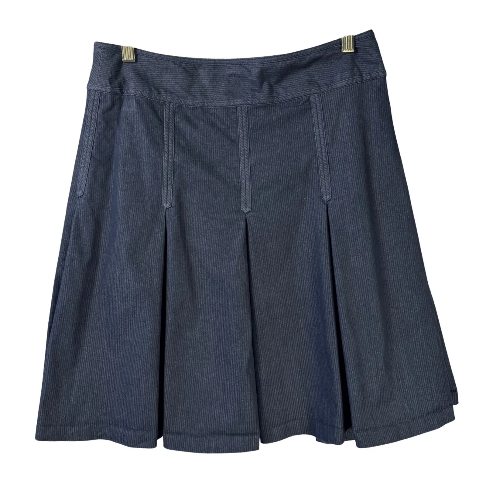 Classic and flattering Ann Taylor LOFT pleated skirt in a deep blue pinstripe denim fabric. This pie... Show more